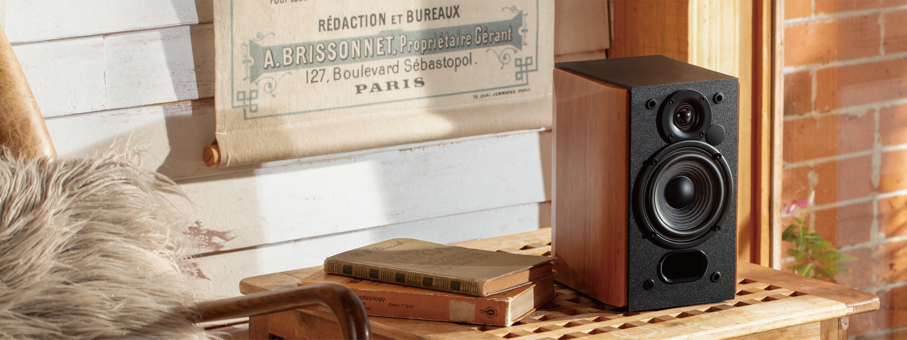 Built-in Class-D amplifier with 21W+21W RMS power output. Classic acoustic configuration with 1-inch(25mm) tweeter and 4-inch(116mm) mid-bass driver.