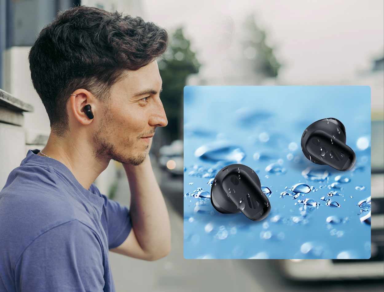 Note: The charging case is not dust- or water-resistant. Protection may degrade over time due to daily wear and tear.