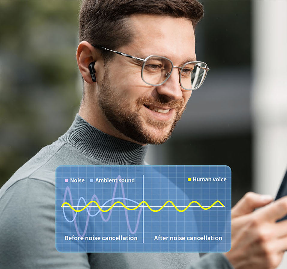 With the advanced new generation algorithm, these true wireless earbuds excel in diverse scenarios by effectively minimising environmental noise, amplifying human voice, and delivering exceptional sound clarity and fidelity. Experience uninterrupted, crystal-clear phone conversations, even in the midst of a noisy environment.