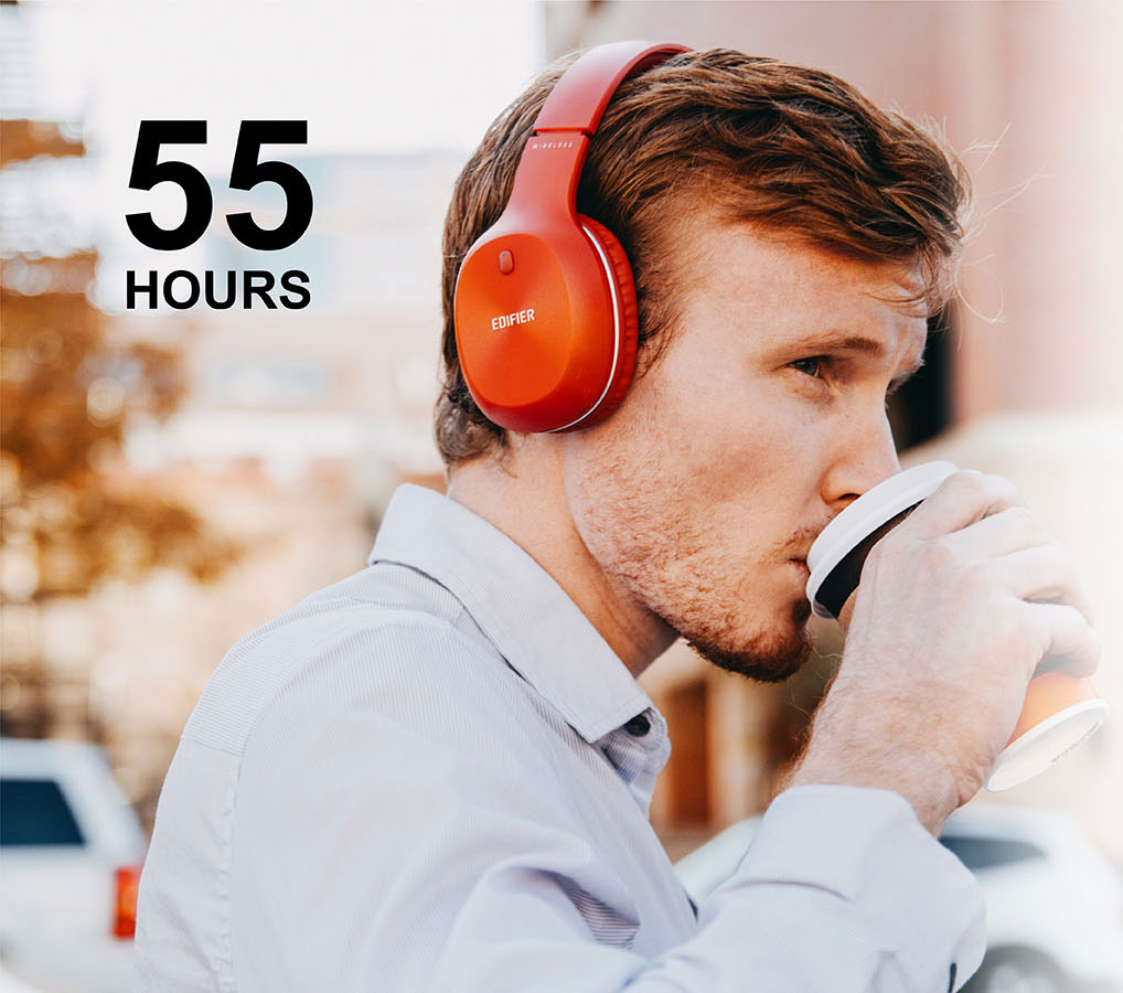The built-in high-capacity lithium battery provides up to 55 hours of wireless listening time.