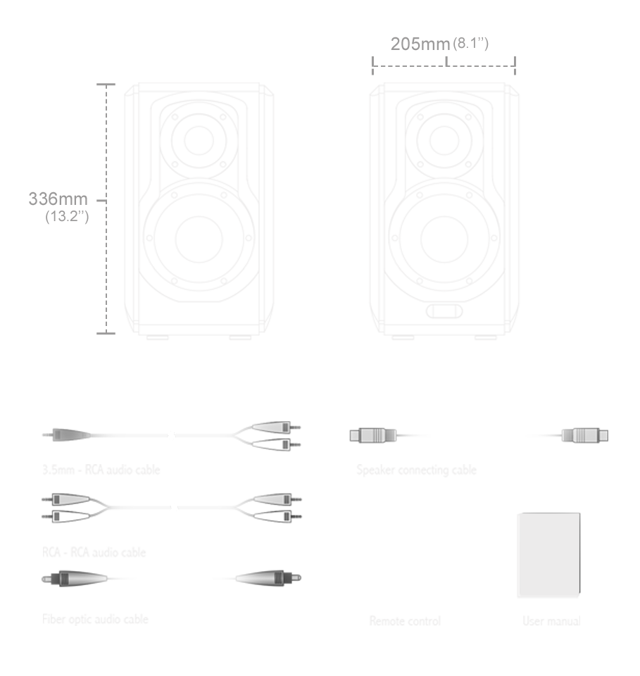 Two active speakers are connected via proprietary 5.8GHz & 5.2GHz connections. The high speed and low latency connection guarantees the uncompressed signal transmission and the real-time signal synchronization between the two active speakers.