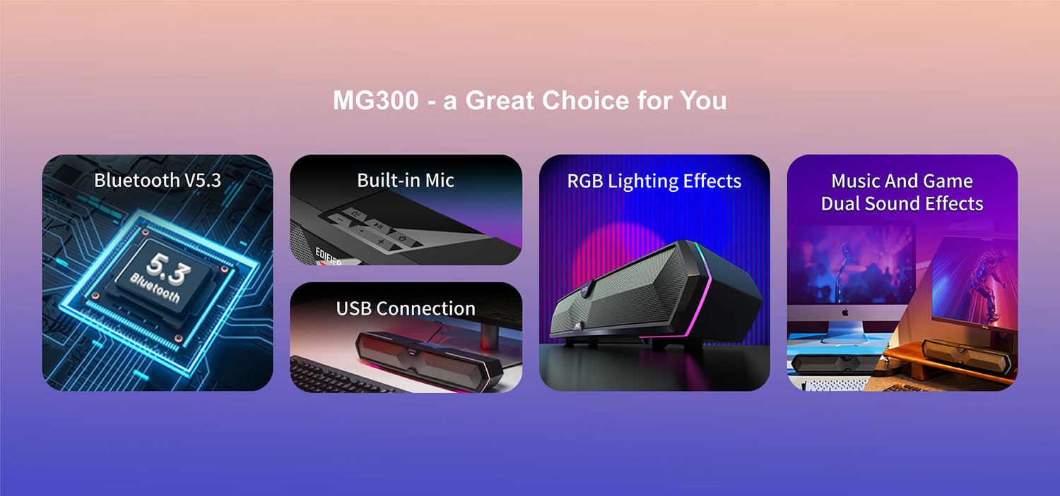El altavoz Bluetooth MG300 cuenta con modos de sonido para música y juegos. En el modo música, la voz del artista se amplifica, brindándote una experiencia auditiva placentera. En el modo juego, escucharás cada detalle para que conquistes y mantengas tu posición.