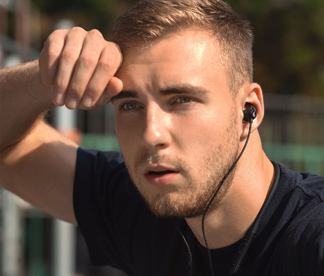 La protección IP55 protege contra el polvo y el agua con tecnología de nano-recubrimiento para hacer que los auriculares sean duraderos, y usted puede seguir escuchando música ya sea que llueva o haga sol.