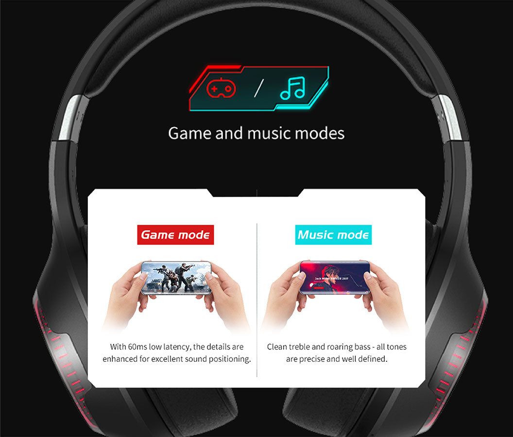 Los HECATE G33BT, equipados con un chip PixArt de baja latencia y Bluetooth 5.0, son compatibles con dispositivos iOS y Android. Con una rápida conexión a tu teléfono móvil, los G33BT ofrecen una experiencia comparable a la de unos auriculares con cable para juegos.