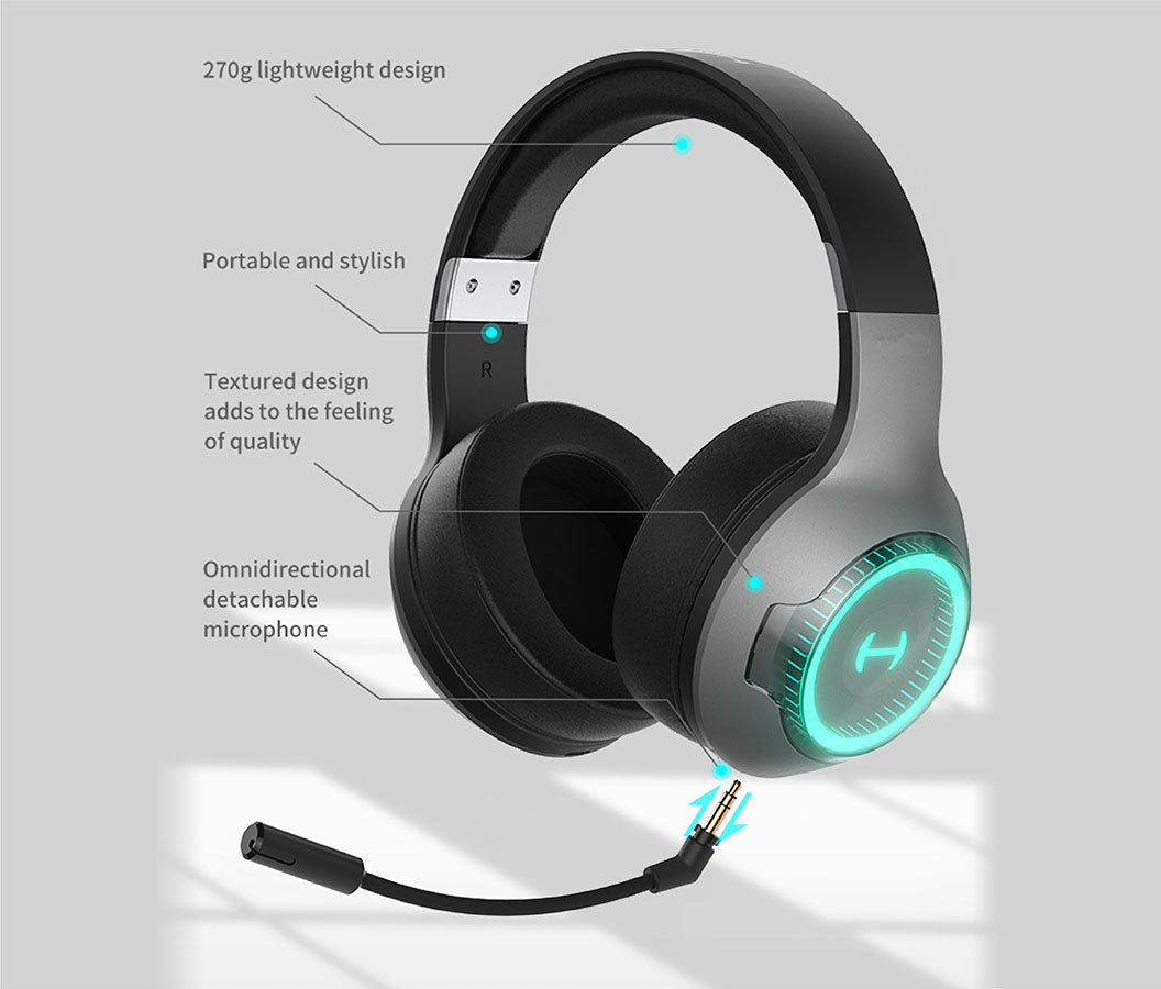 Los auriculares pesan solo 270 g y están diseñados para ofrecer comodidad durante largas sesiones de juego. El micrófono omnidireccional extraíble con cancelación de ruido proporciona una comunicación nítida.