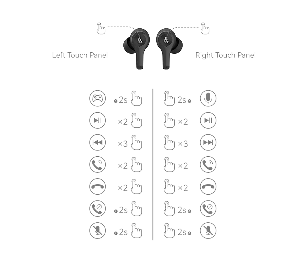 El control táctil de doble oído ofrece una experiencia perfecta: cambia fácilmente el modo de juego de baja latencia, navega por las pistas, reproduce/pausa música, maneja llamadas y controla tu asistente de voz, todo culminando en una verdadera experiencia inalámbrica.