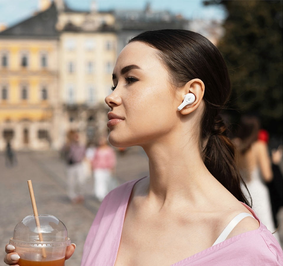 Disfruta de hasta 6,5 horas de reproducción con una sola carga y un total de 26 horas con el estuche de carga. Una carga rápida USB-C de 10 minutos proporciona una hora adicional de reproducción. El panel de protección NTC integrado corta la alimentación automáticamente cuando la carga está completa, evitando la sobrecarga. Nota: El tiempo de reproducción puede variar según el entorno, el nivel de volumen y la fuente de audio.
