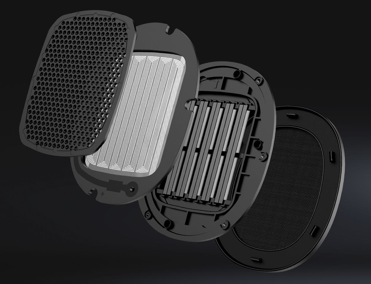 Es habitual abordar la distribución desigual del campo magnético en otros auriculares magnéticos planos mediante el uso de cables de diferentes anchos en el diafragma. Con EqualMass™, llevamos este enfoque un paso más allá. Al conectar en paralelo diferentes números de cables del mismo ancho, EqualMass™ logra una fuerza impulsora uniforme en todas las partes del diafragma, manteniendo su peso distribuido uniformemente. Esto permite que el diafragma se mueva con el mismo movimiento e impulso, reduciendo la distorsión armónica prácticamente a cero. En la segunda generación del cableado EqualMass™, introducimos una estructura de cableado simétrica que mejora aún más la estabilidad del diafragma en todo el espectro de frecuencias.