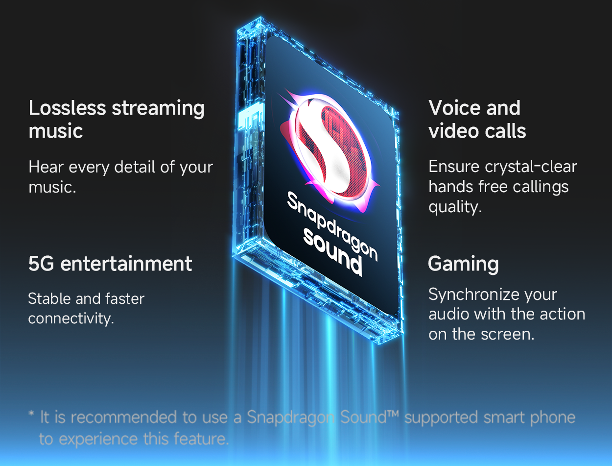 Construido con SoC de audio Bluetooth® Qualcomm® QCC5181, el S5 es compatible con Snapdragon Sound Technology Suite para brindar una experiencia de audio premium e inmersiva.
