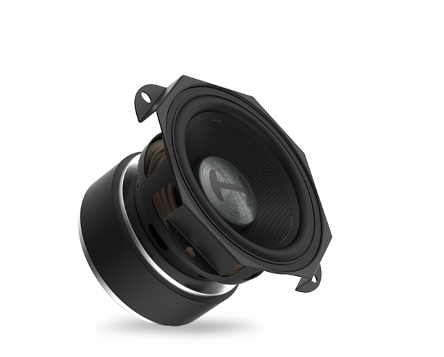 Unidad de alta fidelidad de 2,75" de frecuencia completa, con base de sonido de fibra compuesta y cono reflector de protección. La fuente de alimentación independiente proporciona 8 W + 8 W de potencia continua sin distorsión, con un valor pico de hasta 16 W + 16 W.