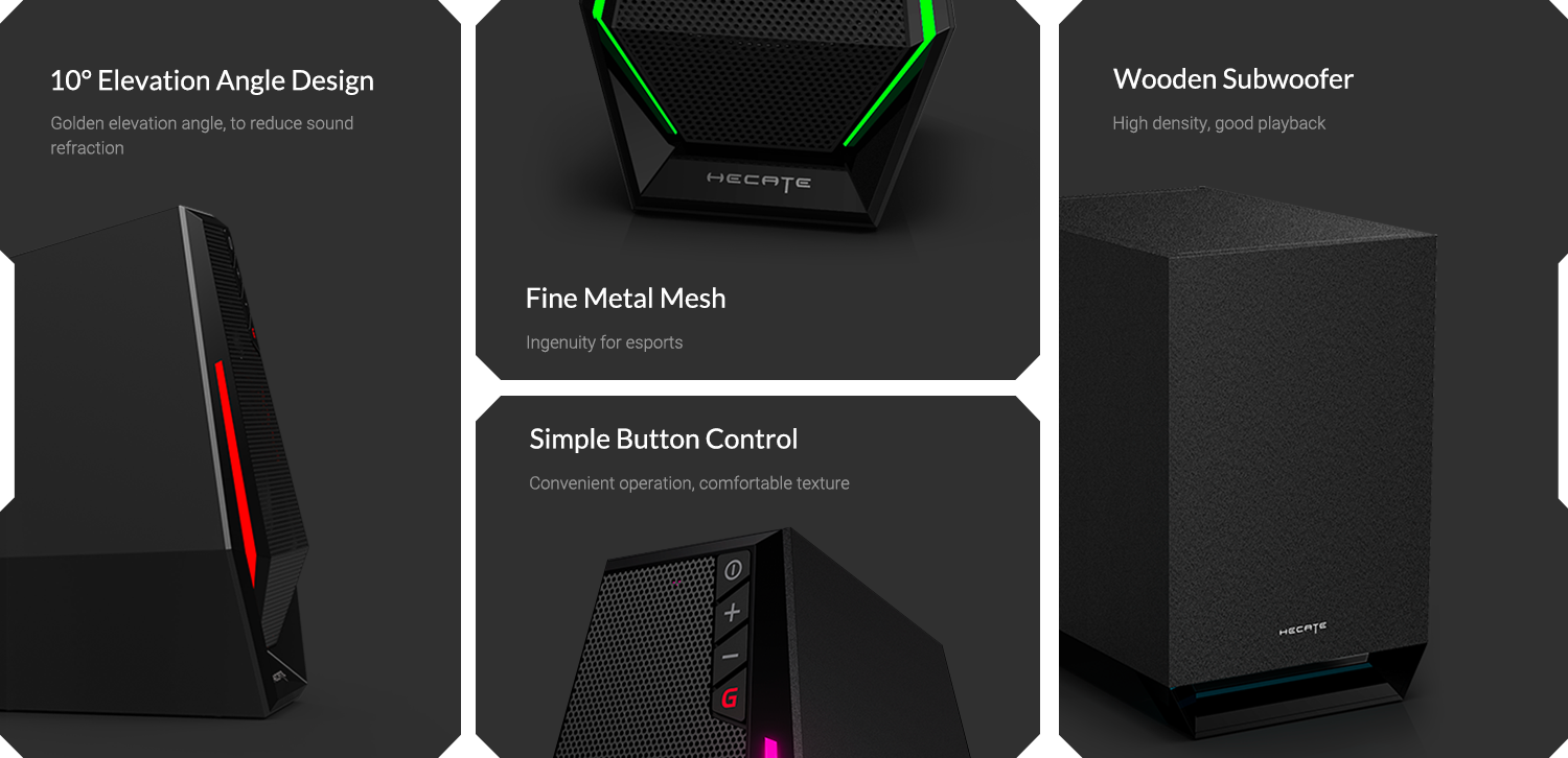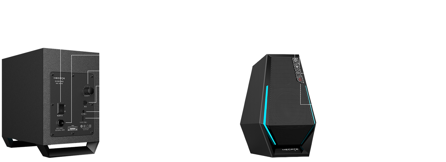 La estética de esports del G1500 MAX encarna un estilo futurista Cyberpunk, caracterizado por líneas minimalistas que definen el cuerpo Sci&Tech. Los altavoces hexagonales con forma de "brazo grande", alojados en gabinetes de madera, evocan la sensación de un éxito de taquilla.