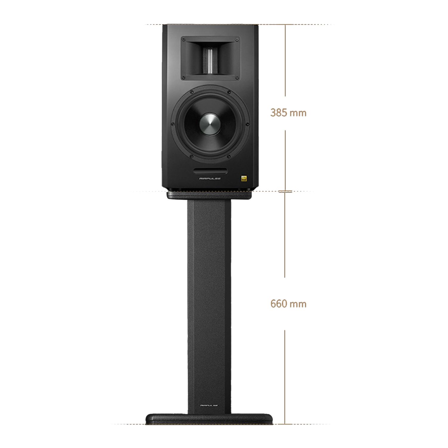 Los soportes del ST300 tienen una altura de 660 mm. Con una ubicación del tweeter de 303 mm en el altavoz A300/A300Pro, la altura del tweeter se establecerá a 965 mm del suelo, que es la altura estándar para escuchar.
