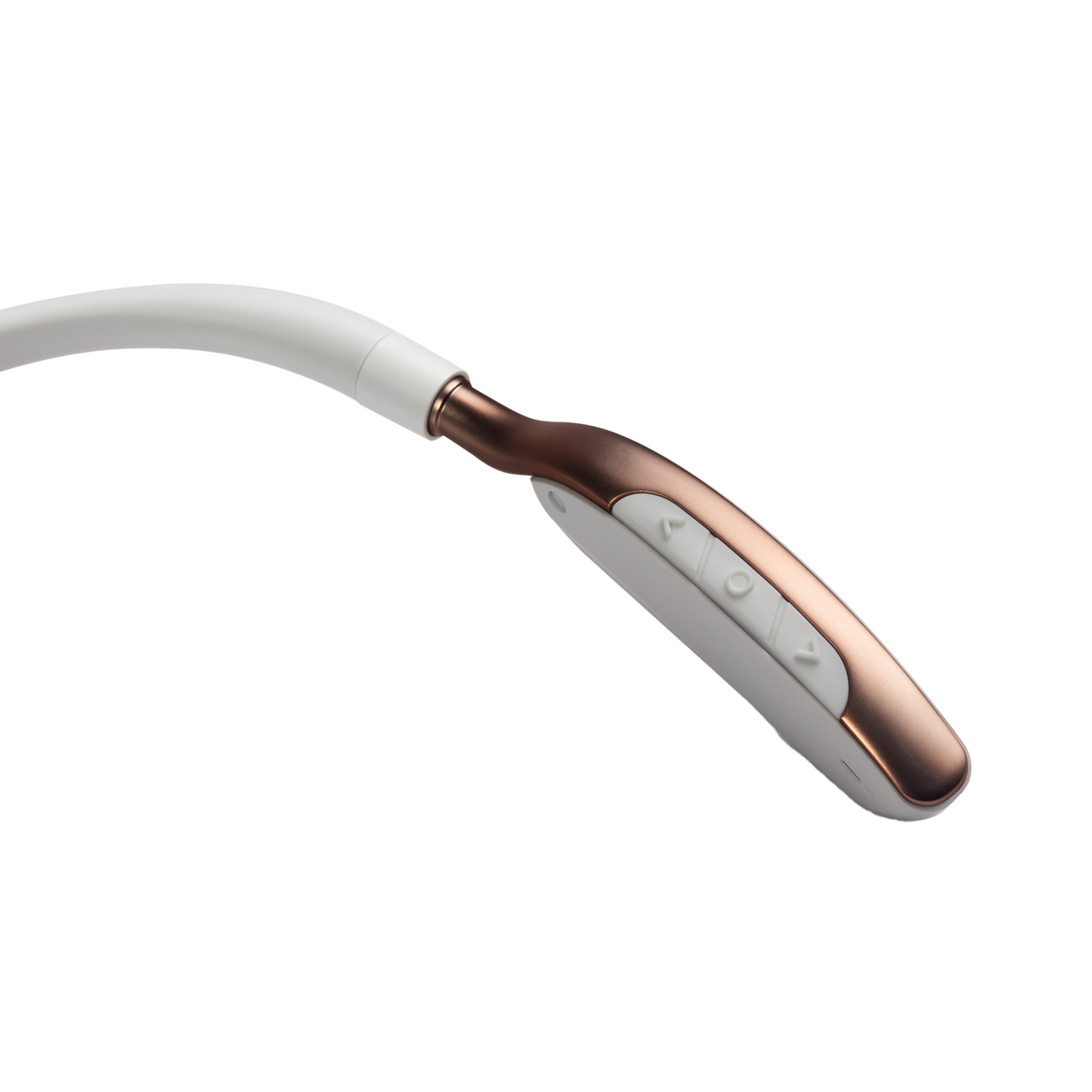 Tres botones en la banda para el cuello permiten atender una llamada telefónica y cambiar de pista con solo pulsar un botón.