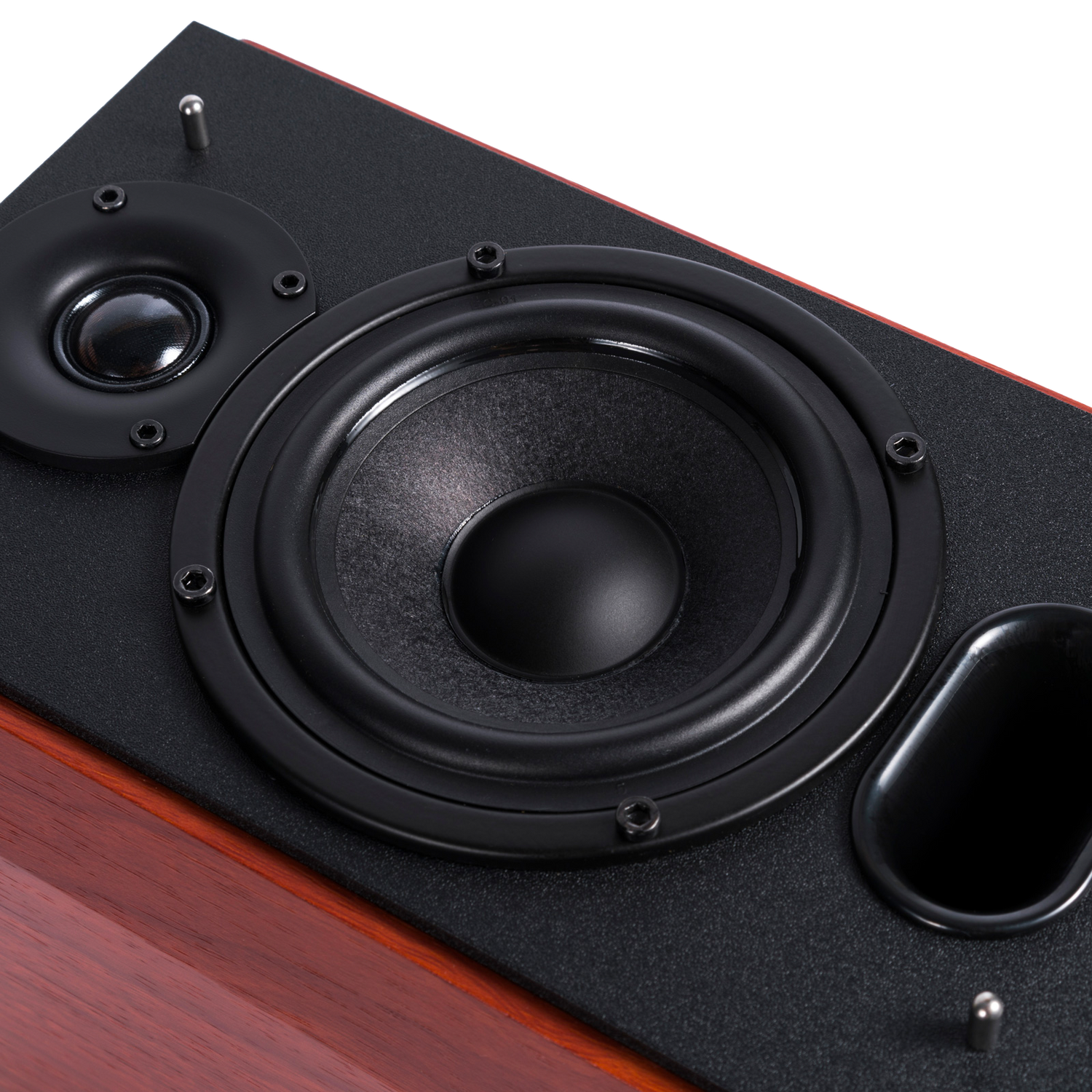 The P17 passive speakers use market proven MDF enclosures for the classic designed cabinets. These enclosures are engineered to reduce cabinet resonance effectively. The exterior of the speaker is finished in an elegent wood accent that fits both comtemporary decor as well as setups with a vintage vibe.
