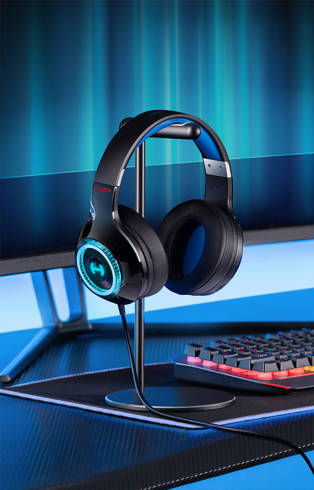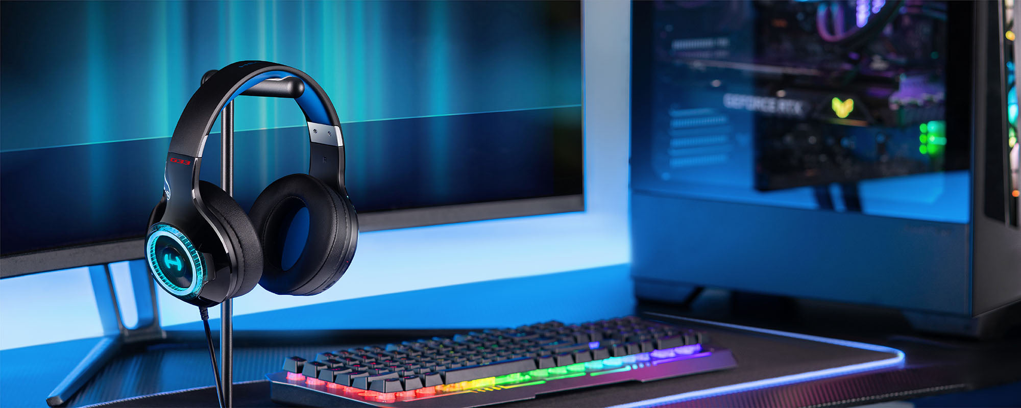 The G33 headset features a 260g lightweight design, soft leather earmuffs, memory foam ear cushions, and thicker headband padding to keep you comfortable throughout your gaming marathon.