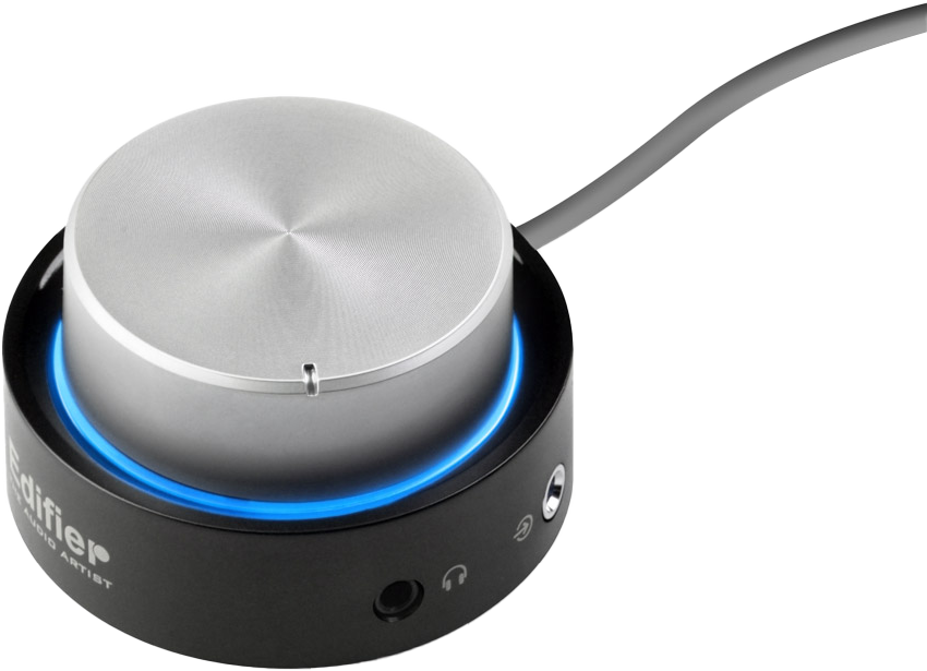 While earning serious style points, Edifier’s M3200 is designed with brilliant functionality. A wired remote control with an aluminum wheel offers a smooth operating experience and lets you effortlessly adjust master volume. The M3200’s remote control features a subtle blue halo as the power indicator. So you’ll know exactly when this 2.1 speaker system is switched on and ready to pump out some serious beats. A headphone output and a 3.5mm auxiliary input port are also conveniently located on the remote control.