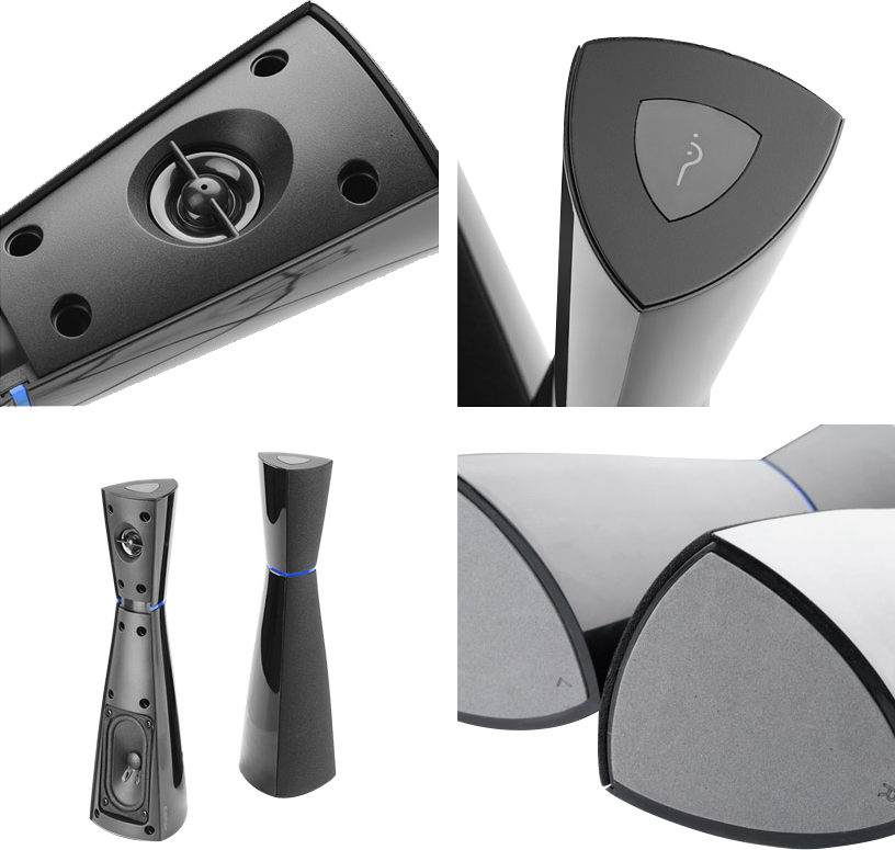 Forget boring, boxy speakers. The uniquely designed M3200 speaker offers a refreshing look that will dazzle your eyes. Two hourglass shaped satellites accompany a curvy subwoofer to bring you exceptional sound. Plug into your computer for a crisp look paired with luxurious sound.
