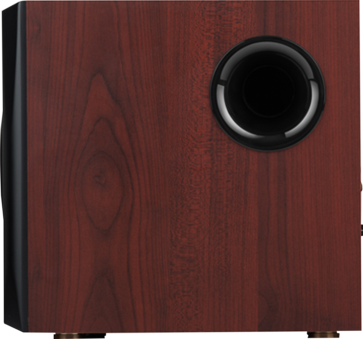 This subwoofer has an enhanced side panel bass reflex port. This reflex port enhances your listening experience for all types of bass sounds. Enjoy deep rumbling lows from your favourite movies, music, games and so much more with this 2.1 system.