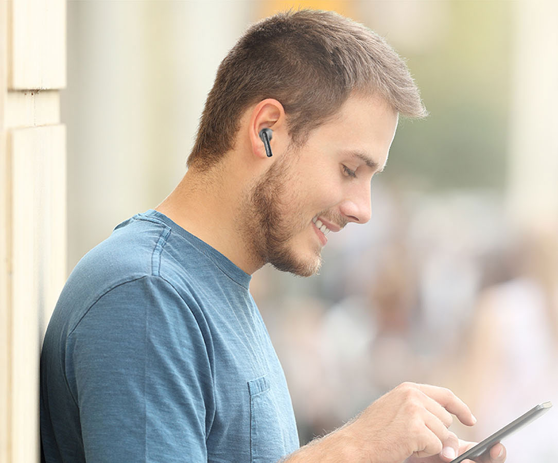 Semi-in-ear ergonomic design to fit the ear curve. Single earbud weighs around 3.4g, small and light. Not only comfortable, but also snug and secure.
