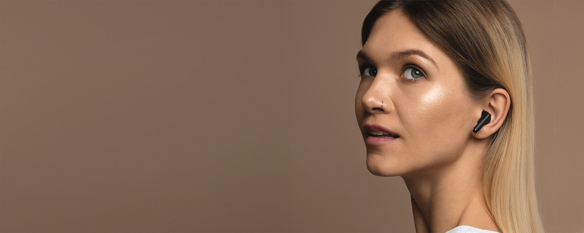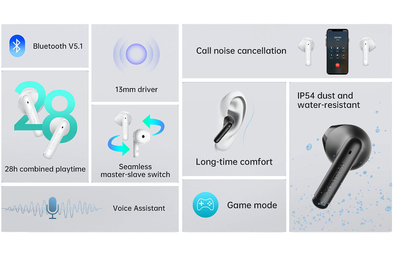 Semi-in-ear ergonomic design to fit the ear curve. Single earbud weighs around 3.4g, small and light. Not only comfortable, but also snug and secure.
