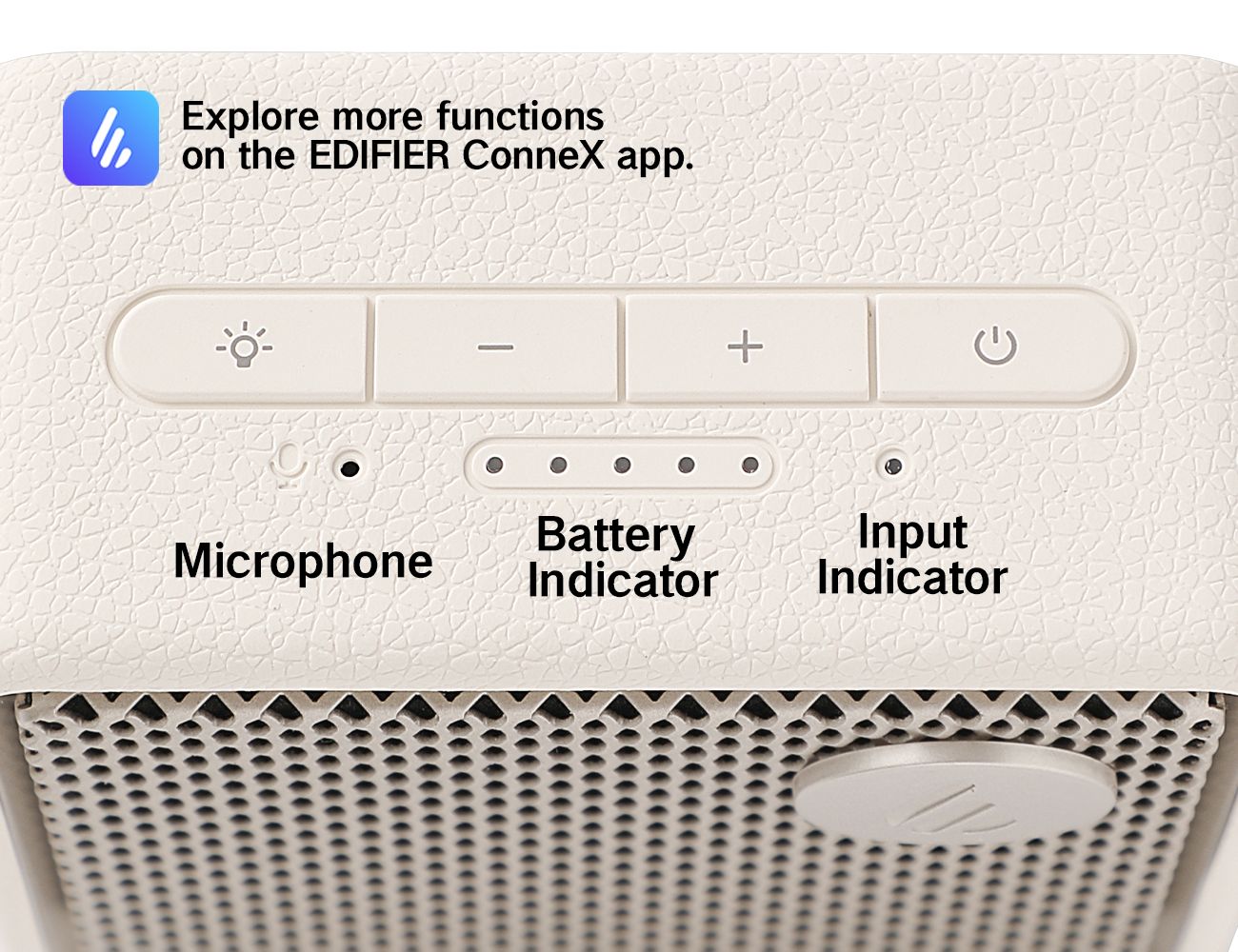 Control your music effortlessly with the top-mounted buttons, designed for quick and intuitive access to playback, volume and lighting. With the EDIFIER ConneX app, you can access more functions.